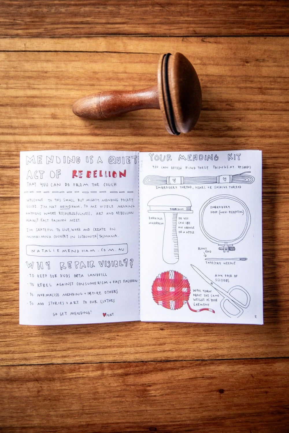 Tuck this zine-style pocket guide into your sewing kit. Learn fun, easy steps to visibly darn your fave woolly clothes back to life.